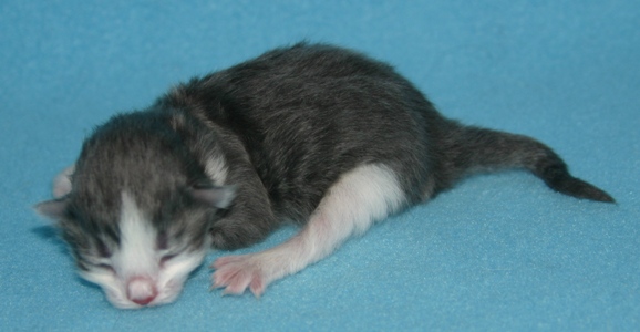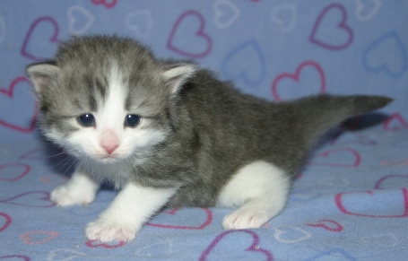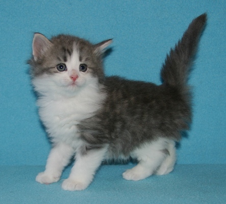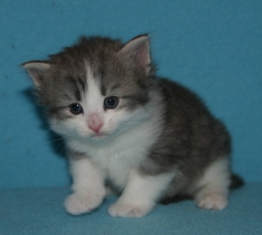 Rowan Male Blue-silver mackerel tabby & white Rowan is loved by Susanne & Will Cummings and Crenshaw in Virginia.