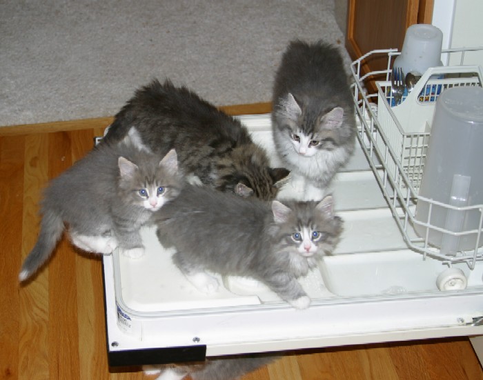 We havent written you in ages because once we have our whole house to explore we dont have much time for boring things like writing letters. But I did find a few minutes today while everyone else was napping to write about some of our favorite games. We call them Helping lisa-mom. First on the list is helping lisa-mom clean litter boxes. Its first because we play it so often at least once and sometimes twice a day. Lisa-mom takes a bag and goes from room to room scooping out our boxes. As soon as she starts on a box, at least one of us jumps in to help. Sometimes she just switches to a different box when we jump in, so usually several of us play at the same time so we can cover every box. Once in the box, we bat at the scoop or stand right where lisa-mom is trying to scoop. And sometimes we attack the bag, too. Our goal is to see if we can add time to lisa-moms scooping the longer she has to spend on a box, the better! And then once the box is clean, we take turns using it right away. Along with cleaning litter boxes goes sweeping the floor around the boxes. We love this game! The brooms are kinda fuzzy and soft and we think they are just right for pouncing on. This game doesnt last nearly as long as it should cause lisa-mom often spoils our fun by picking us up and moving us out of the way. Then she sweeps the litter into a dustpan and quits playing. Another really fun game is making the bed. This is a good game when lisa-mom is just pulling up the covers and straightening them, but it gets really, really great when she puts clean linens on the bed. When she does that, we can hide under each layer as she tries to put it on the bed. We think someday well manage to get her to make up the whole thing without noticing one of us is under the bottom sheet. Then well move and scare her. It will be so funny! We also help load and unload the dishwasher for her. Its best when theres still a bit of food on the dishes. We like the smell and we try to taste all the interesting things lisa-mom and Ken-dad had to eat. Its not quite as wonderful as trying to get Ken-dads food away from him, but its still a good time. We also like to walk all over the clean dishes to make sure theres nothing left that needs to be washed -- or licked -- off. Lisa-mom always tells us its a good thing Ken-dad doesnt see us do that or wed be in BIG trouble. (That's me, Zara, right in front!) The game we dont like is vacuuming. That thing is noisy and scary! We just supervise from the top of the cat tree when lisa-mom gets it out. We do sometimes chase the cord around, but not when that thing is making noise! Lisa-mom says these arent games. She calls them housework. But theyre so much fun for us we KNOW they are games. But it does make us wonder what lisa-mom does when shes not at home. She calls that work, too, but we think shes having fun and shes not sharing the fun with us. One of these days were going to have to go with her to see for sure. I bet we could play a lot of games at work with her. Zara © 2003 lisa s vasa |