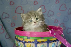 We heard that Easter is this Sunday. lisa-mom made us sit in a silly basket with bright pink grass. We wanted to eat the grass but she wouldn't let us. It wasn't very nice of her -- the least she could've done is let us have some fun since we let her take our pictures. Maybe the Easter Bunny will bring us something fun to make up for that. And if he doesn't, maybe Shira-mom will steal some ham for us. That would be okay, too. Hope you all have a happy Easter! Makana and all the LostWoods Gifts