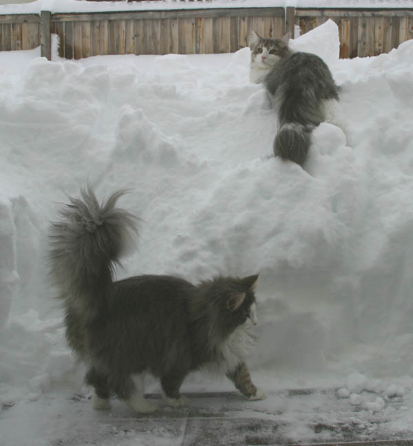 Maggie and Talia explore the four feet of snow in the backyard. March 2003 |