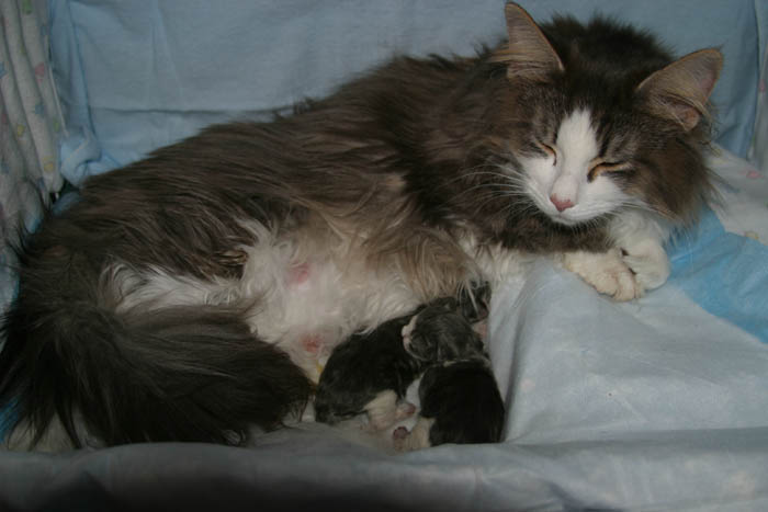 Talia, Tantris, and Kimbry. The babies are about 10 hours old. |