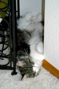 Azhure thinking about getting into some trouble.    Axis apparently has inherited his mother's urge to sleep in odd and uncomfortable positions.