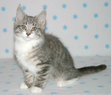 Makaio Blue mackerel tabby with white and white tail tip male Sold